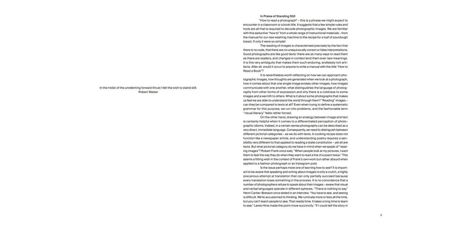 Well-known icons stand next to unknown trouvailles, pioneers of color photography next to Netcam photographers. The short accompanying texts point to a reality that lies behind the facts and beneath the surface. Ninety-nine times, editor Peter Pfrunder stops time to look inward and outward at once – until the invisible emerges in the visible and images turn out to be a wondrous mixture of facts and fantasies.