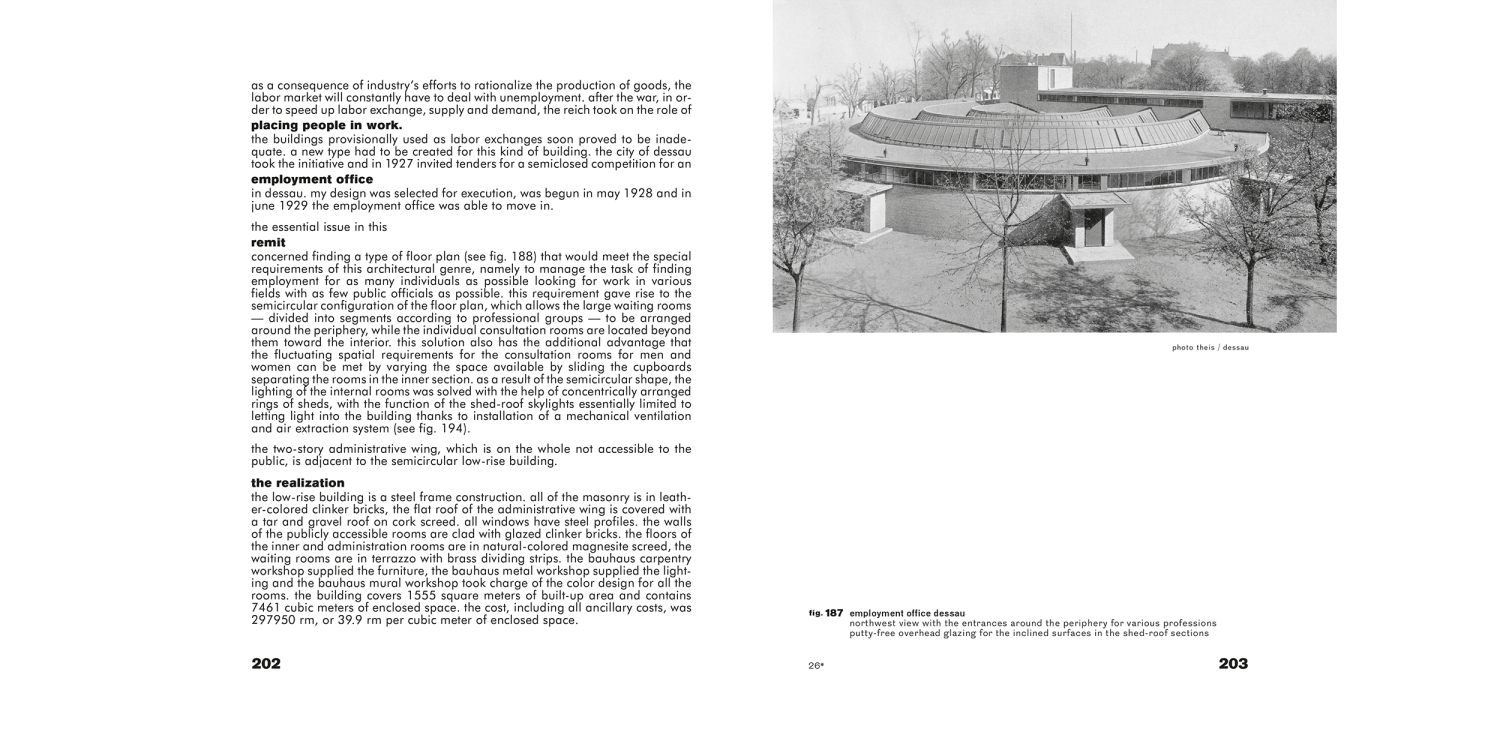 In his third and last contribution within the Bauhausbücher series, the founder and long-standing director of the Bauhaus, Walter Gropius, gives a comprehensive overview of the Bauhaus in Dessau. In addition to a brief outline of the origins and development of the school, Gropius presents the architectural design of the new Bauhaus building and the associated Masters’ Houses with the help of photographic documentary evidence and planning sketches. In the book, he traces the technical planning development with extreme precision and provides an insight into the design practice of the “Bauhäusler.