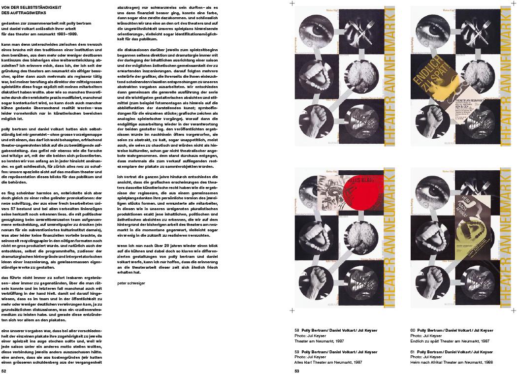 With their atmosphere of sociopolitical ferment, the 1980s also witnessed the appearance of a new aesthetic in Swiss graphic design, influenced by the punk aesthetic and first experiments with the Macintosh. Alternative cultural and political movements consciously seized on new visual identities in order to set themselves apart from established institutions. In constructive conflict with the stylistic rigor of the Swiss Style, young designers discovered innovative forms of visual expression which continue to enrich and enhance the world of graphic design today. With posters from 1980 to 1995, this publication presents a heterogeneous collection of design attitudes that consciously break the rules. Included are works by Peter Bäder, Polly Bertram and Daniel Volkart, Richard Feurer, Roli Fischbacher, Peter Frey, Ralph Schraivogel, Mihaly Varga, Cornel Windlin, Ruedi Wyss, and others.