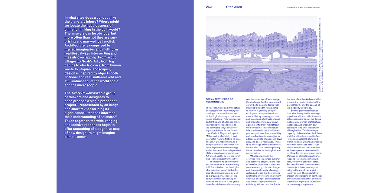 The essays, notes, projects and conversations are grouped in chapters on Earths, Political Ecologies, Corporealities and Enclosures, accompanied by images, illustrations and sketches. The publication is a project of The Avery Review, a journal produced by the Office of Publications at Columbia University’s Graduate School of Architecture, Planning and Preservation.