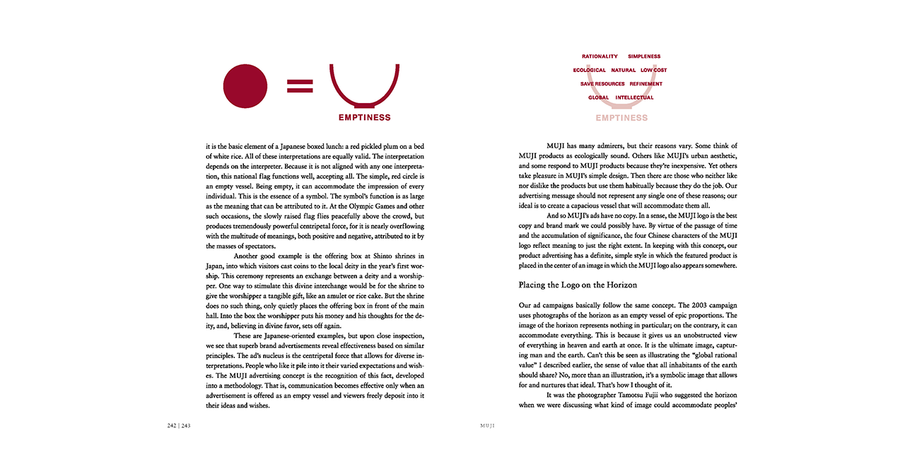 Hara, born 1958, is a Japanese graphic designer and professor at the Musashino Art University. He for instance designed the opening and closing ceremony programs for the Nagano Winter Olympic games 1998. In 2001, Hara enrolled as a board member for the Japanese label MUJI and has considerably molded the identity of this successful corporation as communication and design advisor ever since.