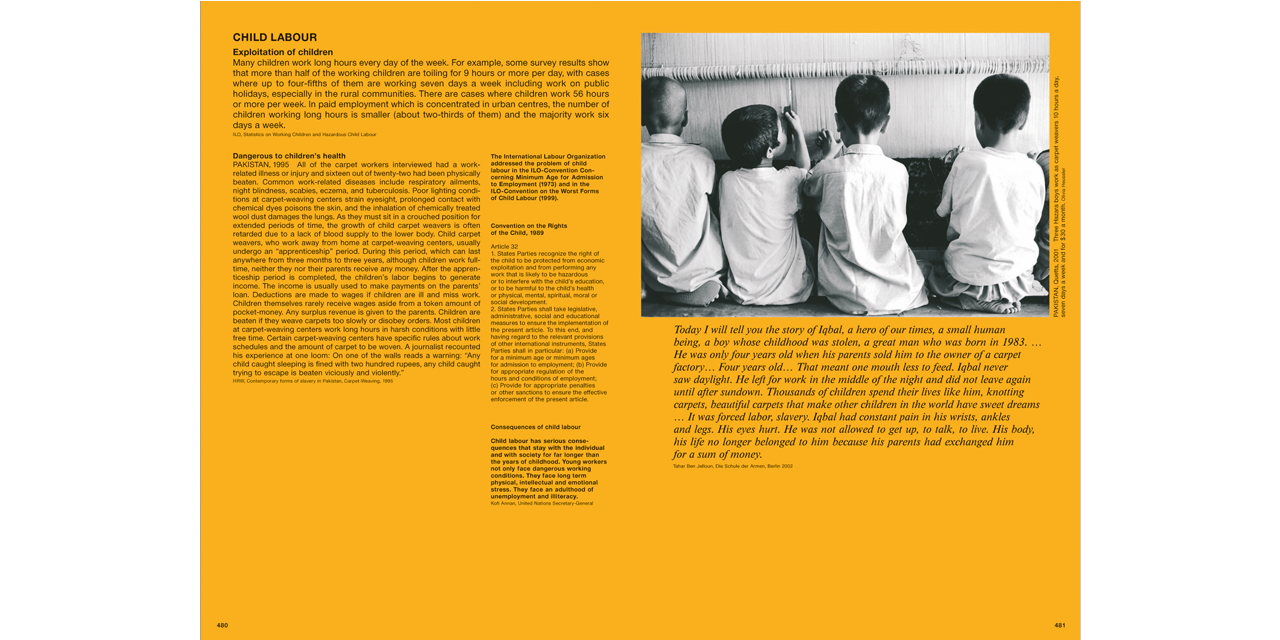 “All men are born free and have an equal right to freedom,” states the UN Convention on Human Rights. Almost all nations have signed treaties to this effect, and yet reality looks rather different: everywhere people are tortured and executed, children starve to death and women are raped. And yet the work of the countless human rights activists all over the world is worth while. Proceedings can be instituted against states that fail to meet requirements, as human rights are internationally enshrined. One of humanity's essential tasks is to implement them. This visual reader wants to make a contribution.