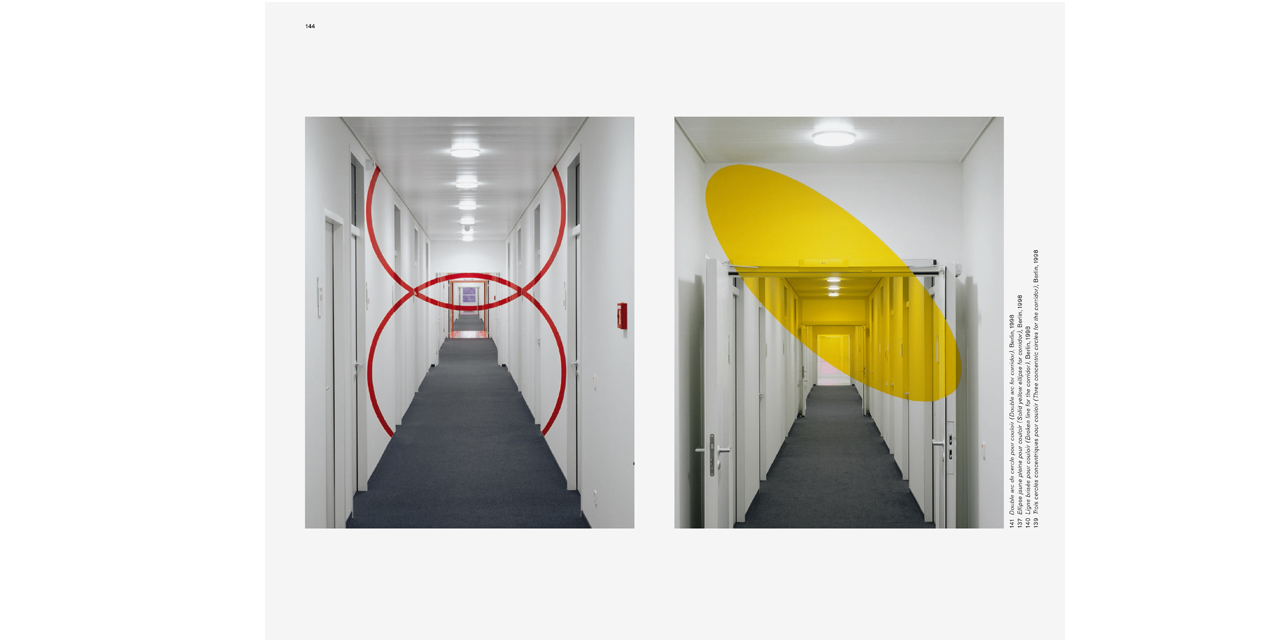 His fascinating spatial installations make use of urban landscapes, walls, and rooms as “screens” for abstract graphical projections which the artist paints, draws, or fabricates from materials such as adhesive tape. Seen from an ideal vantage point, they appear as unexpected two-dimensional patterns against their three-dimensional background. When the viewer then leaves this vantage point and moves through the space, he sees the work as a perpetual metamorphosis of shifting, evolving forms. Accompanying the numerous illustrations is a text by Doris von Drathen that situates the work in its art-historical context, as well as an interview she conducted with the artist.