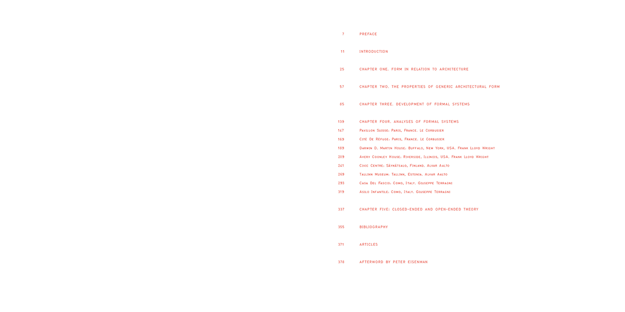 Eisenmann wrote The Formal Basis of Modern Architecture, his dissertation, in 1963 at the University of Cambridge. The dissertation was first published as a facsimile edition by Lars Müller Publishers in 2006. The original content of the publication is now available in a smaller format.