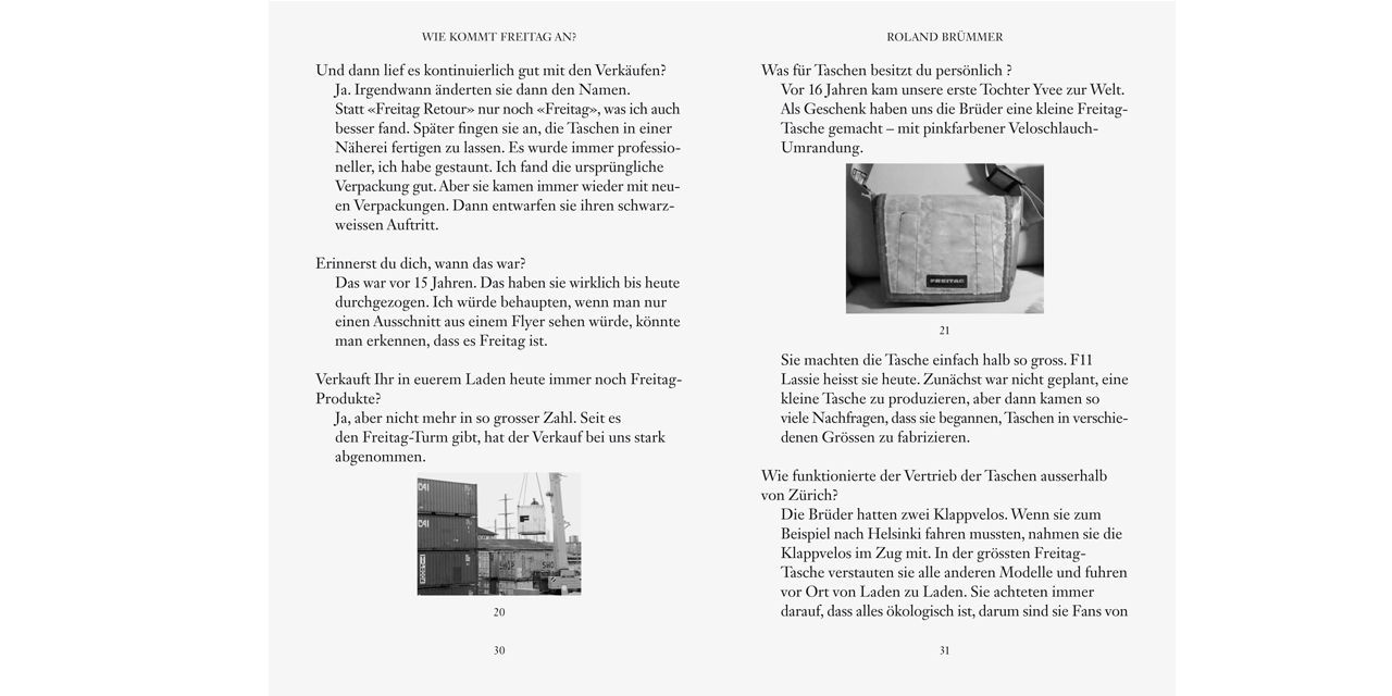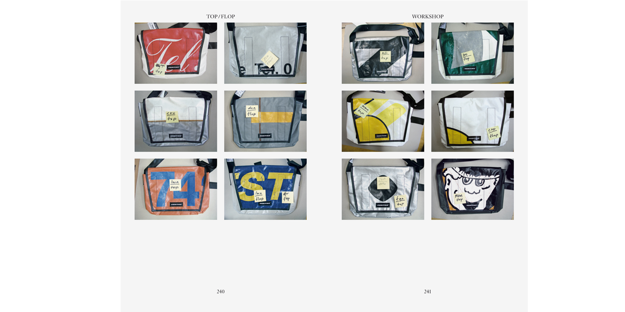 With its unique bags made of used materials, the Freitag company of Zürich is now an established commercial success, selling 300,000 of its design products around the world every year. How can a bag achieve that kind of cult status? How did a small, creative start-up become a large brand with a strong identity? Freitag – Out of the Bag investigates this story. Extensively illustrated interviews with the brothers Daniel and Markus Freitag and their coworkers and collaborators in the fields of product design, manufacturing, distributing, and marketing offer a look behind the scenes at the company, which manages as a brand to embody — through often humorous and ironic communications strategies — the paradox of an individualistic mass product.
