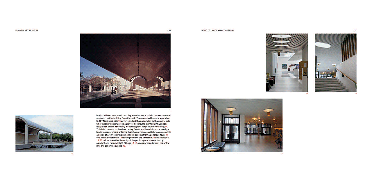 The buildings are compared in terms of their hierarchical spatial order, circulation structure and referential details. The analyses are organized so as to show what is similar and different between two paired types, thus revealing how modern tradition has been diversely inflected.