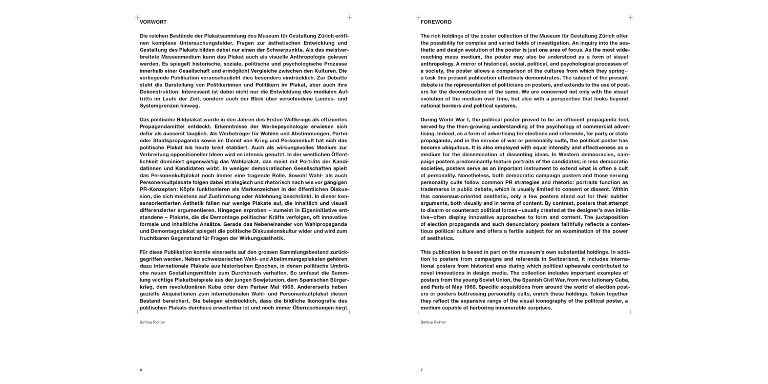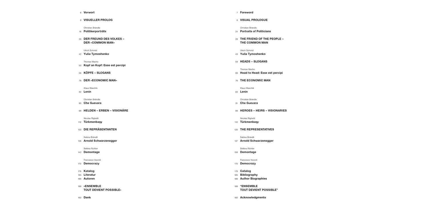 Die Publikation beleuchtet geschichtliche Wurzeln, Epoche machende Wahlkämpfe, wiederkehrende Muster der politischen Öffentlichkeitsarbeit und prägende Figuren wie Lenin, Che Guevara, Arnold Schwarzenegger oder Julia Timoschenko.