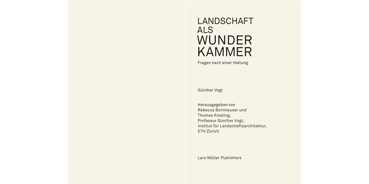 Wenn es die Natur als Ganzes nicht gibt – dann vielleicht die Landschaft als Wunderkammer. Dabei erscheint die fehlende Gesamtheit im besten Fall nicht als Verlust, sondern als Gewinn. Was es für diese Umdeutung braucht, ist ein aufmerksamer Betrachter, der die Vielzahl der Phänomene als Einzelteile sammelt, miteinander in Beziehung setzt und neu arrangiert. Günther Vogt ist ein solcher Sammler und seine Wunderkammer vermag Landschaften und zugleich seine Anschauung derselben zu offenbaren.