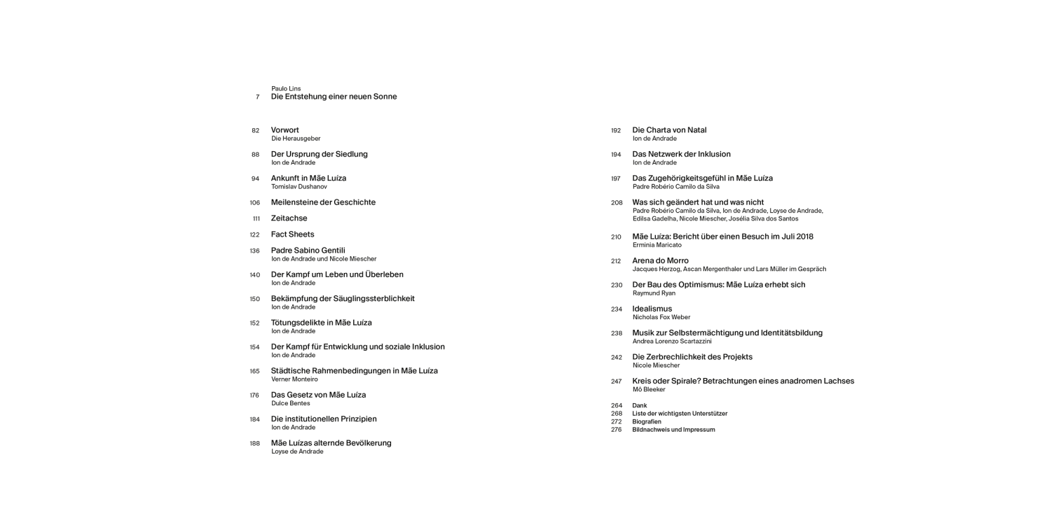 With contributions by Ion de Andrade, Loyse Raboud de Andrade, Dulce Bentes, Mô Bleeker, Tomislav Dushanov, Herzog & de Meuron, Erminia Maricato, Nicole Miescher, Verner Monteiro, Raymund Ryan, Andrea Scartazzini, Robério Camilo da Silva, Nicholas Fox Weber