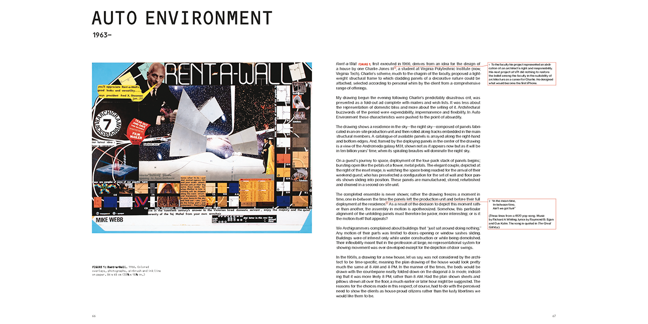 Two Journeys is the first comprehensive monograph on the work of Michael Webb, an artist and trained architect, who operates at the intersection of the two disciplines. The publication assembles sixty years of Webb’s work into a continuously evolving narrative about the multifaceted relationships among the built environment, landscape, and moving vehicles.