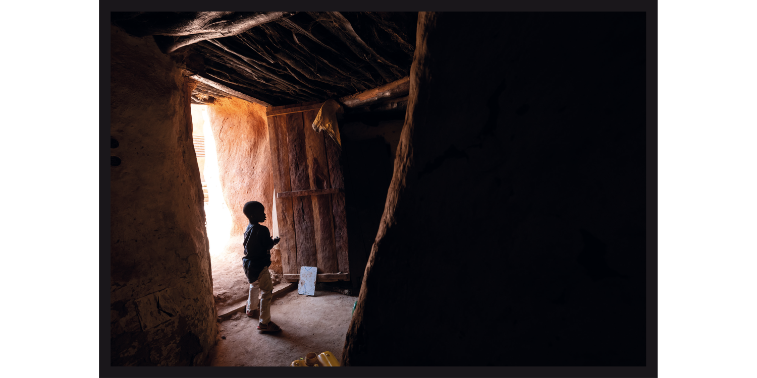 Across the African continent, but especially in the the sub-Saharan region, the light provided by the sun has a particularly stark quality – a fact that becomes apparent in traditional buildings and in the way sunlight shapes the daily routines of their inhabitants. With no artificial light, architecture had to make use of sunlight to create a light source within a building, yet at the same time it had to protect the inhabitants of a house from its intensity. The result is a vernacular architecture that works with very few or small openings. They render the inside of a building nearly pitch black while the outside is illuminated by glaring sunshine.