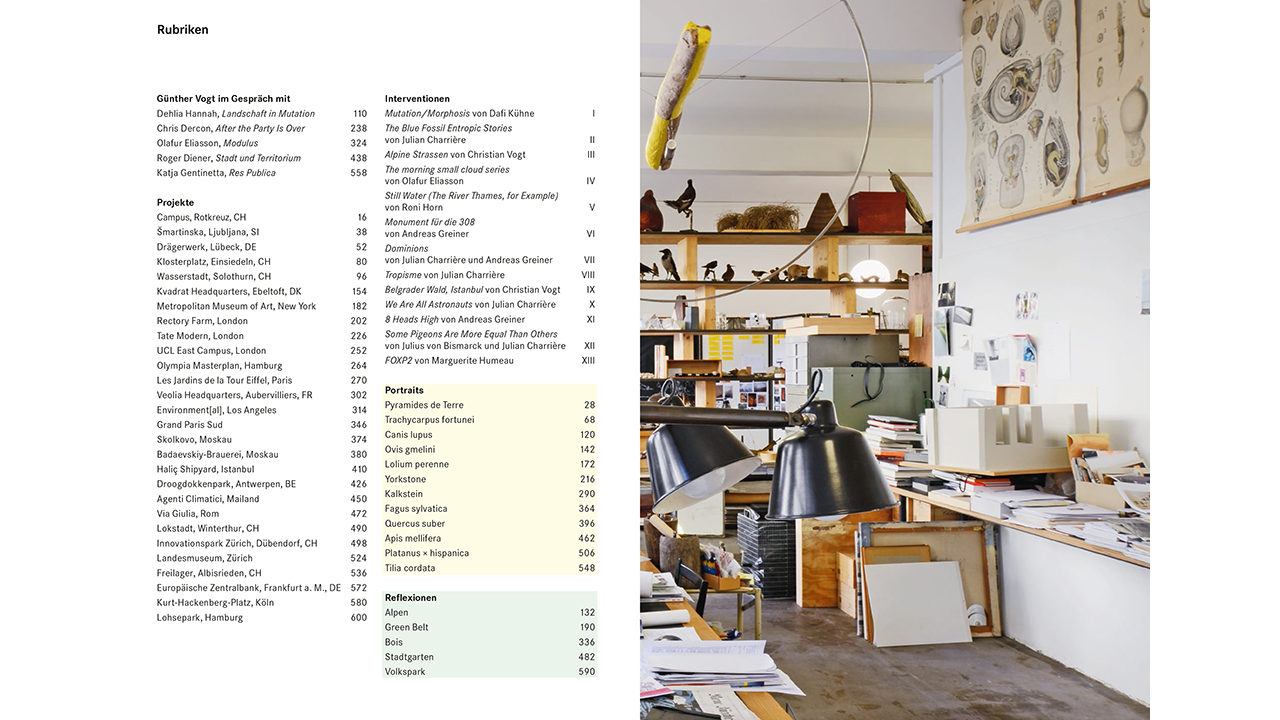 Wer aus der Distanz betrachtet, was wir „Landschaft“ nennen, wird erkennen, dass es sich dabei um ein Artefakt handelt, um einen Lebensraum, von Menschen geschaffen als Teil der gebauten Stadt. Die Gestaltung dieses Raums ist eine Disziplin von zunehmender Bedeutung. Günther Vogt hat mit VOGT Landschaftsarchitekten und als Professor an der ETH Zürich ein Instrumentarium geschaffen und eine Arbeitsweise entwickelt, welche von der grossmassstäblichen Landschaft bis zum kleingliedrigen öffentlichen Stadtraum alle Dimensionen der gestalteten Umwelt einbeziehen.