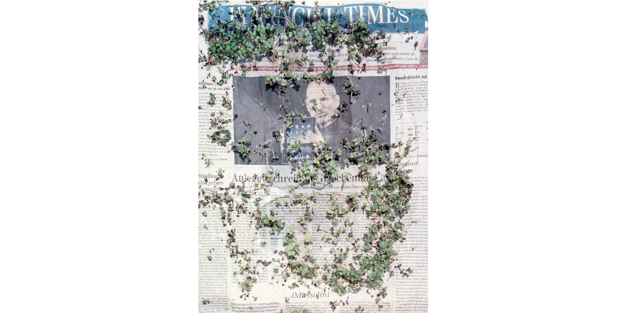 News represents a further development of the much-acclaimed work of artist Thomas Flechtner. Whereas in Snow he looked at snow as a metaphor for timelessness, calm, distance, and loneliness, and in Bloom Flechtner used atmospherically condensed studies of plants to examine the boundless colorfulness and movement of grown nature, for his new project News Flechtner collected newspaper front pages over a period of one year, scattered plant seeds from very different countries over them, watered them, and, finally, exposed them to the sun. He recorded the way the “news” was gradually bleached and overgrown with plants in more than one hundred color photographs. Flechtner contrasts the anarchy of nature with the agenda of mankind, while also questioning the fleetingness of memory and the demands made on it in shaping today’s world.