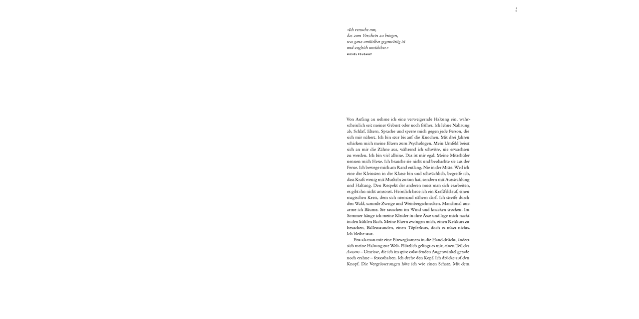 Dem fotografischen Werk steht der autobiographische Text in nichts nach. Eine direkte und unnachgiebige Sprache eröffnet Erdts Welt, in harten und weichen Tönen zeichnet sie ihr persönliches und fotografisches Leben nach, von der Jugend bis in die Gegenwart. Die langsame, sorgfältige Arbeit mit dem Negativ, die Entwicklung im Labor, die Einzigartigkeit und Verletzlichkeit des Materials – ein Teil davon kommt erst in der Sprache zu uns. In dieser Welt ist der Betrachtende nicht Eindringling, sondern Gast, nicht in der Fremde, sondern eigentlich bei sich.