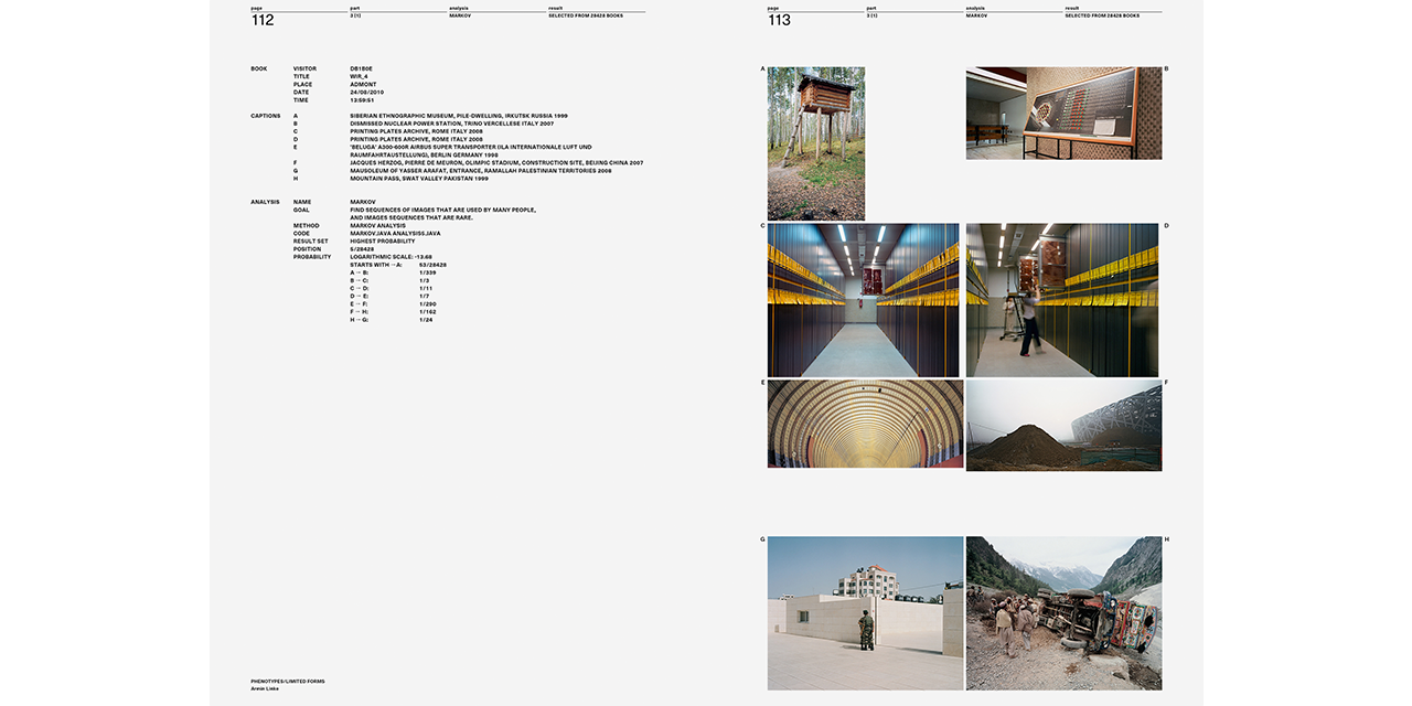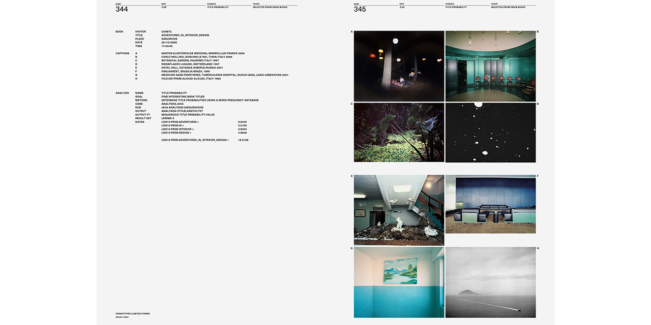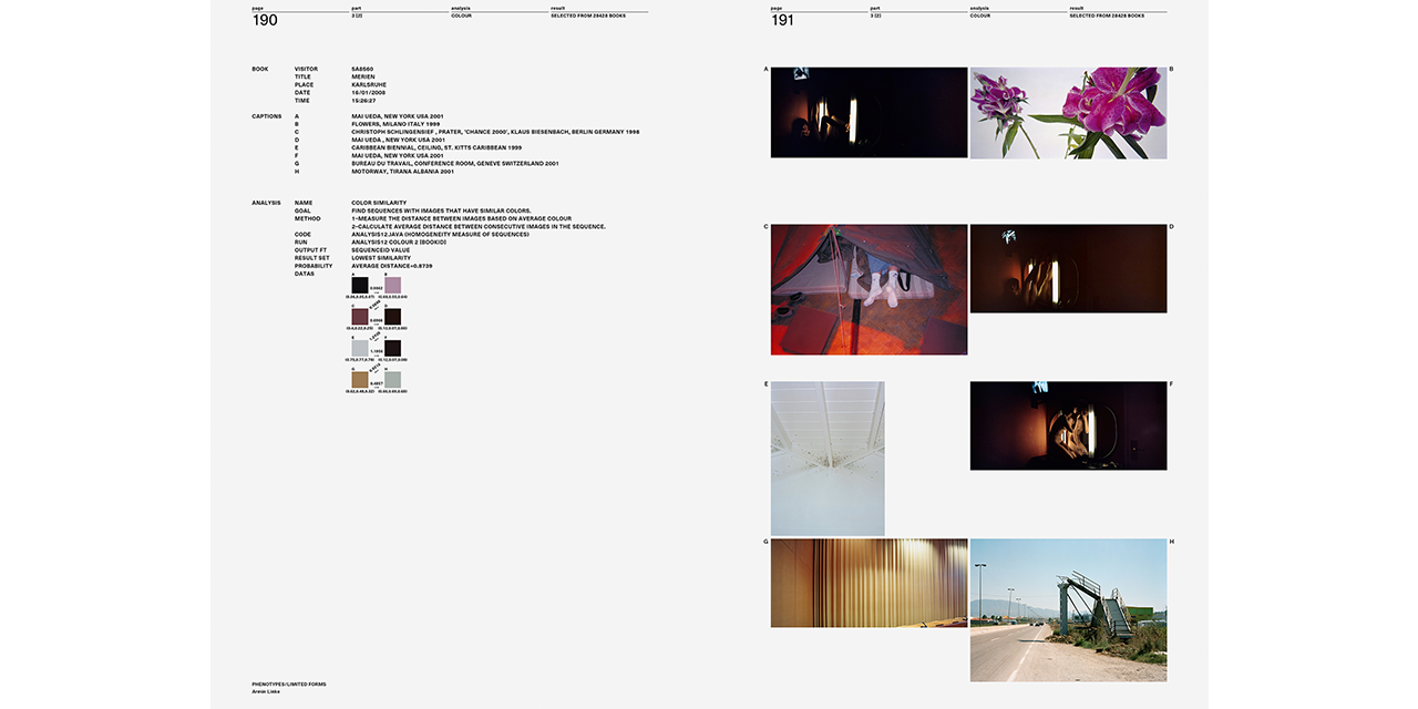 This publication acts as an extension of the interactive exhibition and social experiment; it analyzes the 30.000 sequences selected by the public. Algorithms help understand the connection between the photographs, the number of times they were chosen by an individual visitor and how the visitors named their personal selection of images.