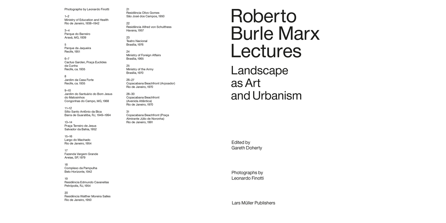 The lectures paint a picture of Burle Marx not just as a gardener, artist and botanist, but as a landscape architect whose ambition was to bring radical change to cities and society. The lectures are framed by photographs, by Leonardo Finotti, of a selection of Burle Marx’s realized projects.