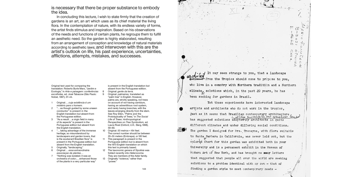 Roberto Burle Marx (1909–1994) remains one of the most important landscape architects in the history of the field. His distinctive and widely acclaimed work has been featured and referenced in numerous sources, yet few of Burle Marx’s own words have been published.