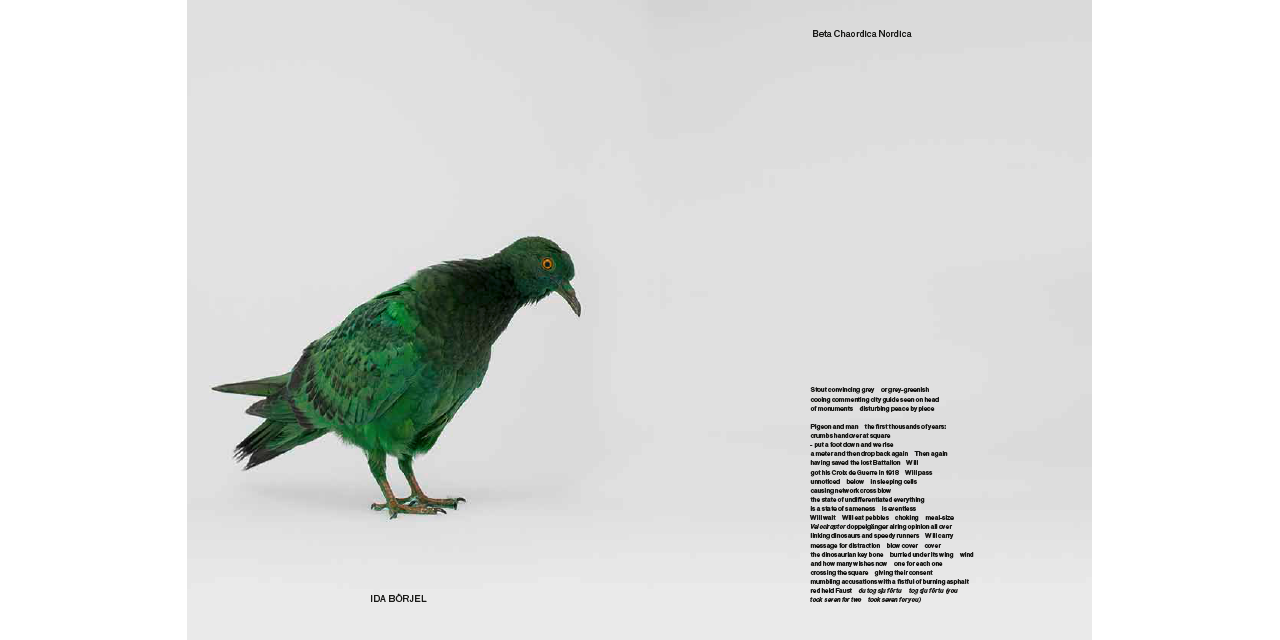 The glossy photographs of the pigeons are accompanied by notes, essays and illustrations as well as interviews and conversations among artists such as Ai Weiwei and Olafur Eliasson.