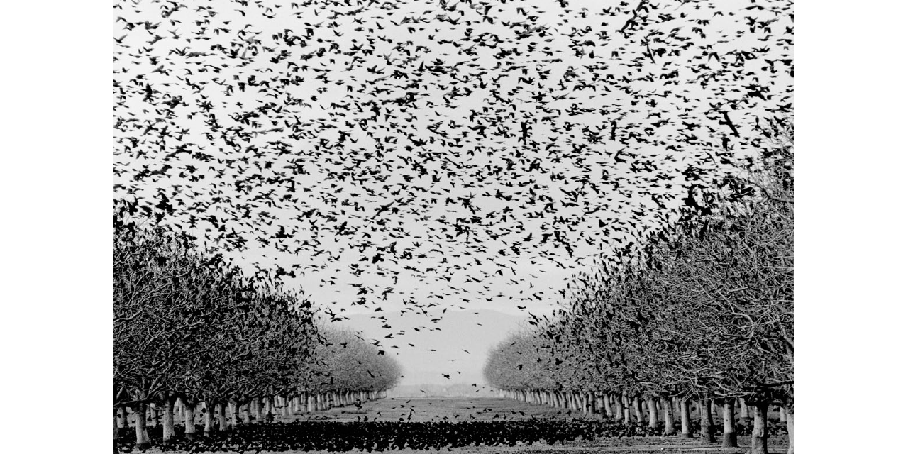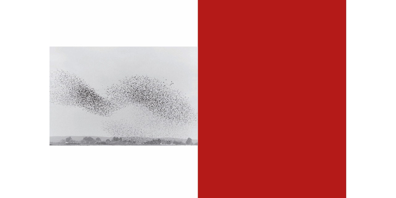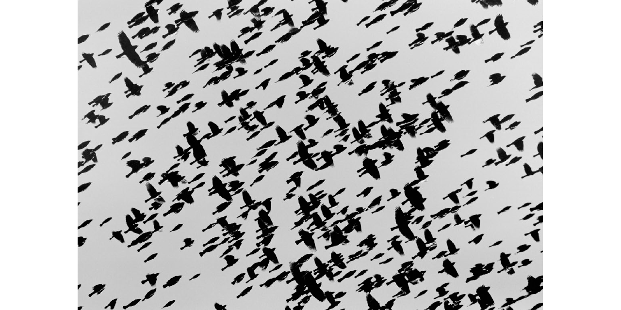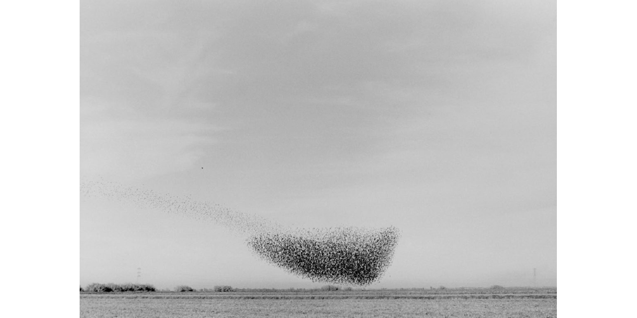 Swarm is a breathtaking photographic series exploring the flock movements of migrating birds. The photographs offer a unique view of the beauty but also the complexity and diversity of shape variations. A swarm sitting on the ground mirrors the surface of the earth like a skin, but as soon as it lifts up it becomes a fluid three-dimensional system in constant flux. This aerial ballet reveals a rhythm of upward explosion and downward, cascading movement. At times the forms seem to explode, blooming like flowers or expanding outward like fireworks. At other times they appear more stable, slowly drifting like a negative image of stellar constellations. Swarm looks up into the sky and follows flight through the dynamic landscape of streams of air.