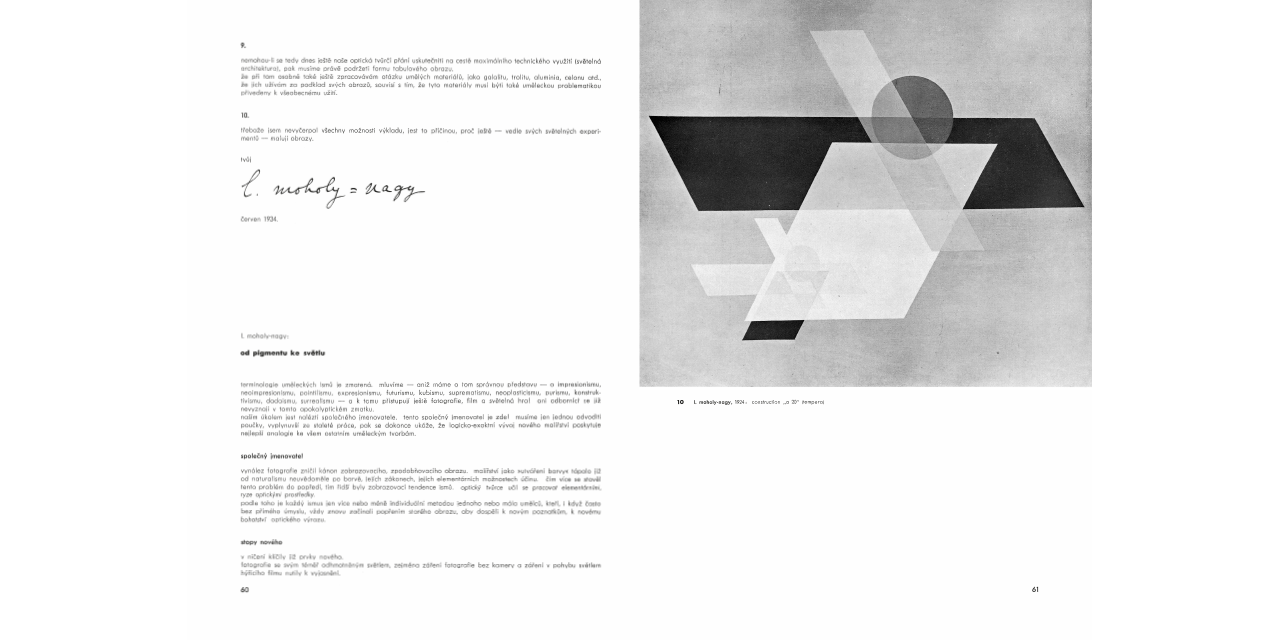 In 1936 the first and only issue of the magazine telehor (Greek for tele-vision) was released in four languages, as a special edition on and by László Moholy-Nagy. The facsimile reprint of the magazine is accompanied by a commentary volume.