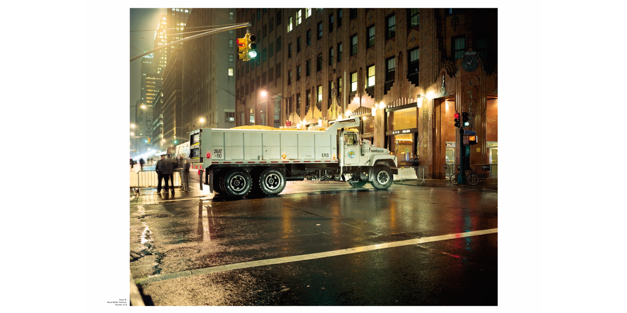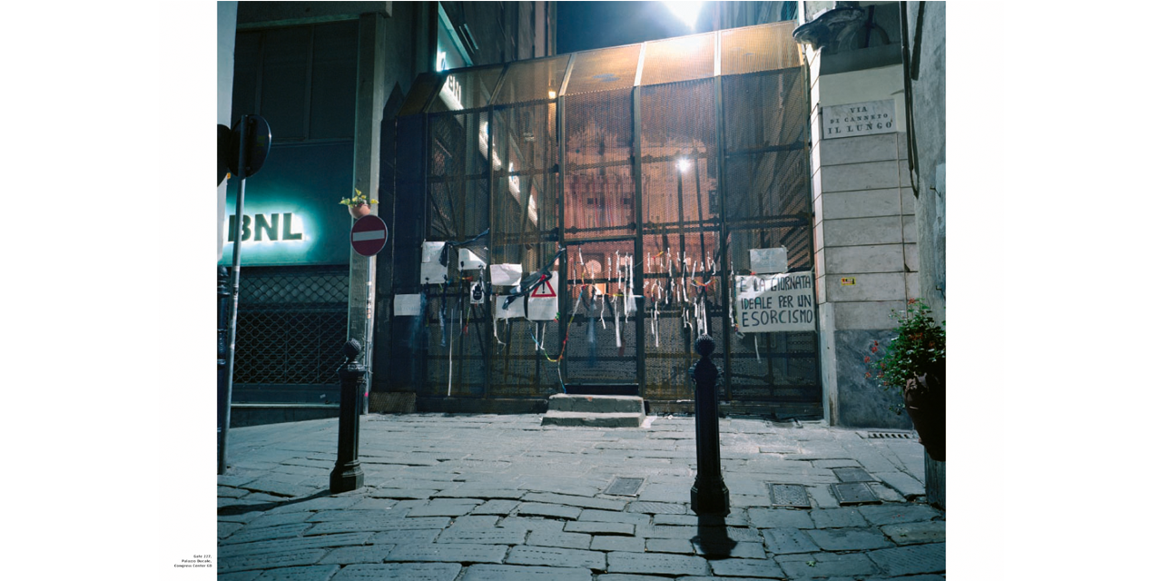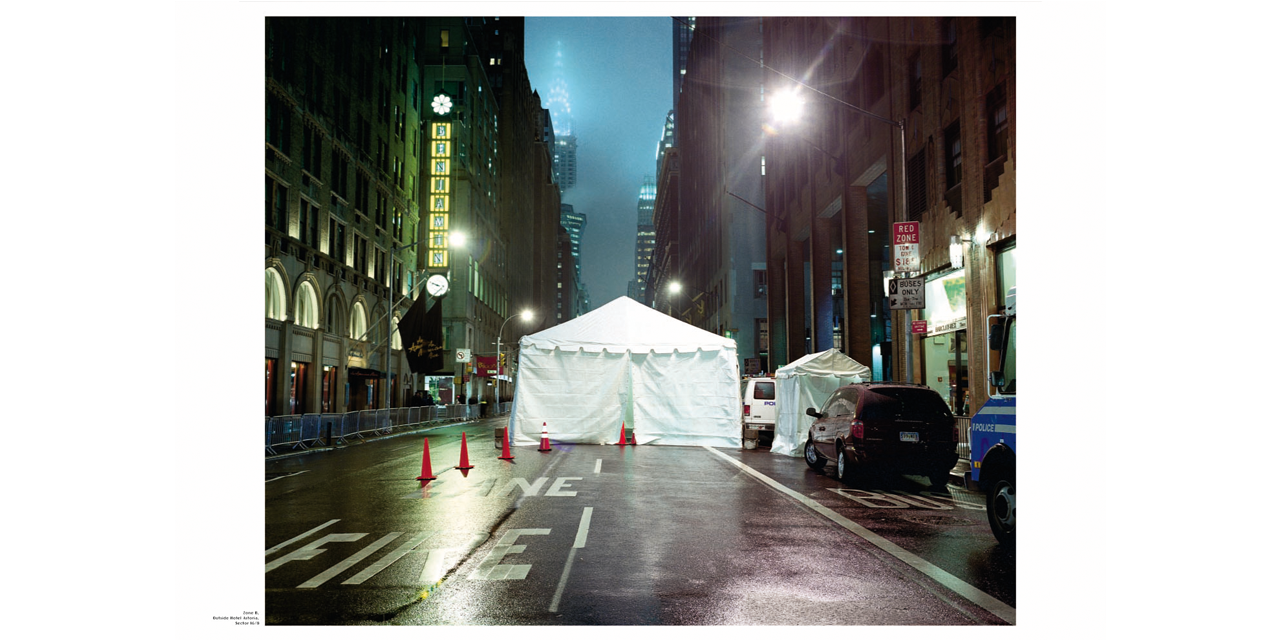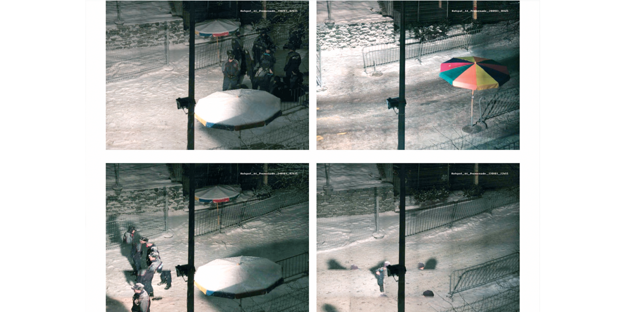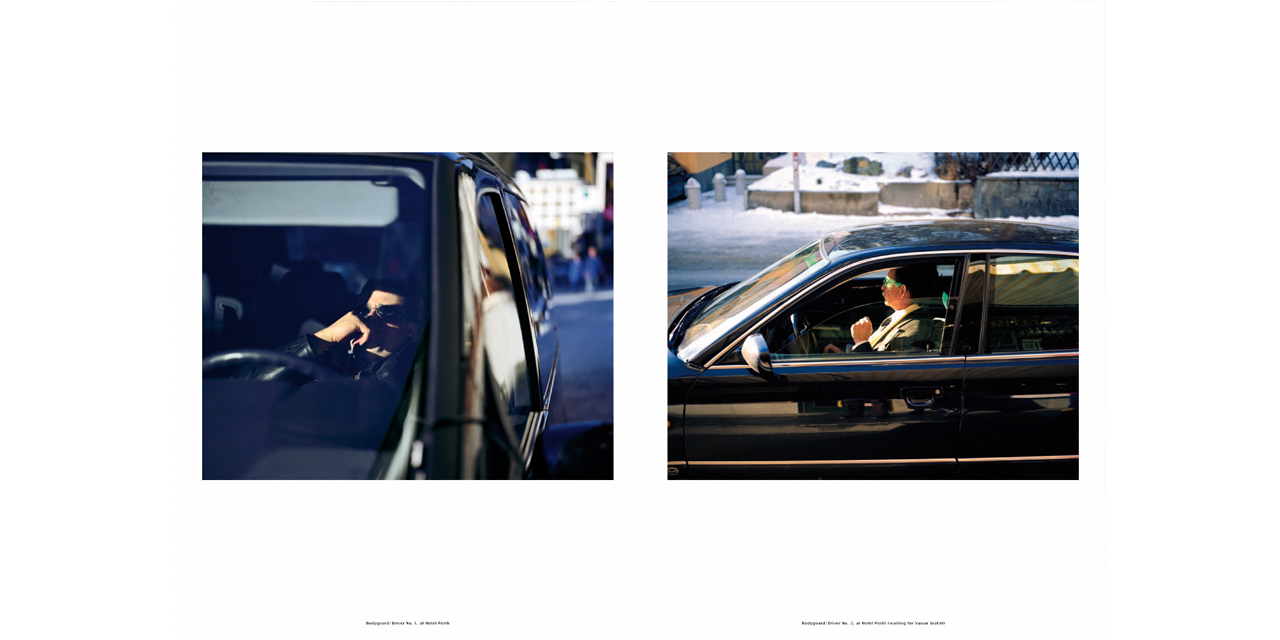 Jules Spinatsch was at the World Economic Forum and also attended the G8 summits at Davos and Evian. But rather than street fighting and handshakes, Jules Spinatsch shows winter nights in Davos, complete with floodlighted barbed wire, containers being used as barricades in Genoa, lonely TV reporters outside broadcast vehicles and sleepy guards in New York. Temporary Discomfort shows people waiting for the big event, which is revealed as meticulously planned down to the last detail.