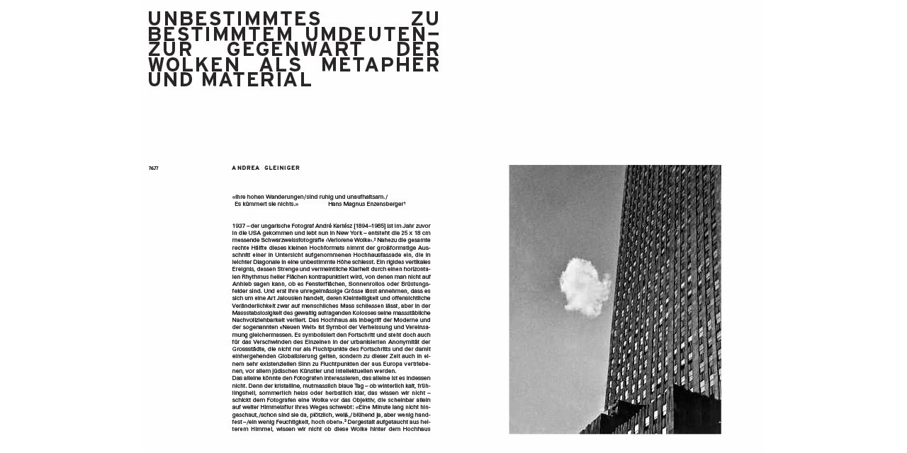 unbestimmt handelt von Wolken und clouds, von Granularem, von Unschärfen, Übergängen und Flaneuren, von Zufall und Imperfektion: Figuren, an denen unsere üblichen Erwartungen scheitern, die Welt nach Kategorien und Gestalten zu bestimmen. Die Reflexion dieser Figuren kann vielleicht andere Aspekte des neu erfahrenen Verlustes vertrauter Bestimmtheiten – beispielsweise an Börsen und Finanzmärkten, im Strassenbild, in wissenschaftlichen und künstlerischen Gewissheiten – beleuchten. Was, wenn die sonst geübten Bestimmtheiten selbst ein wirkender Teil aktueller Krisen wären?