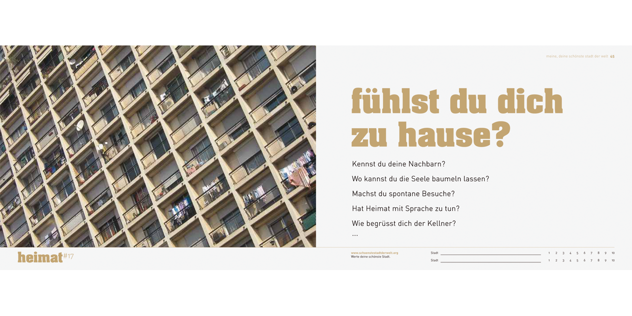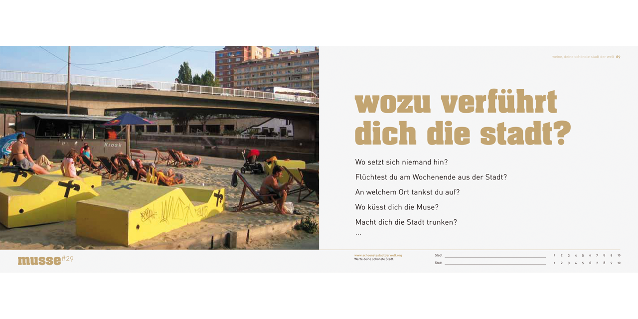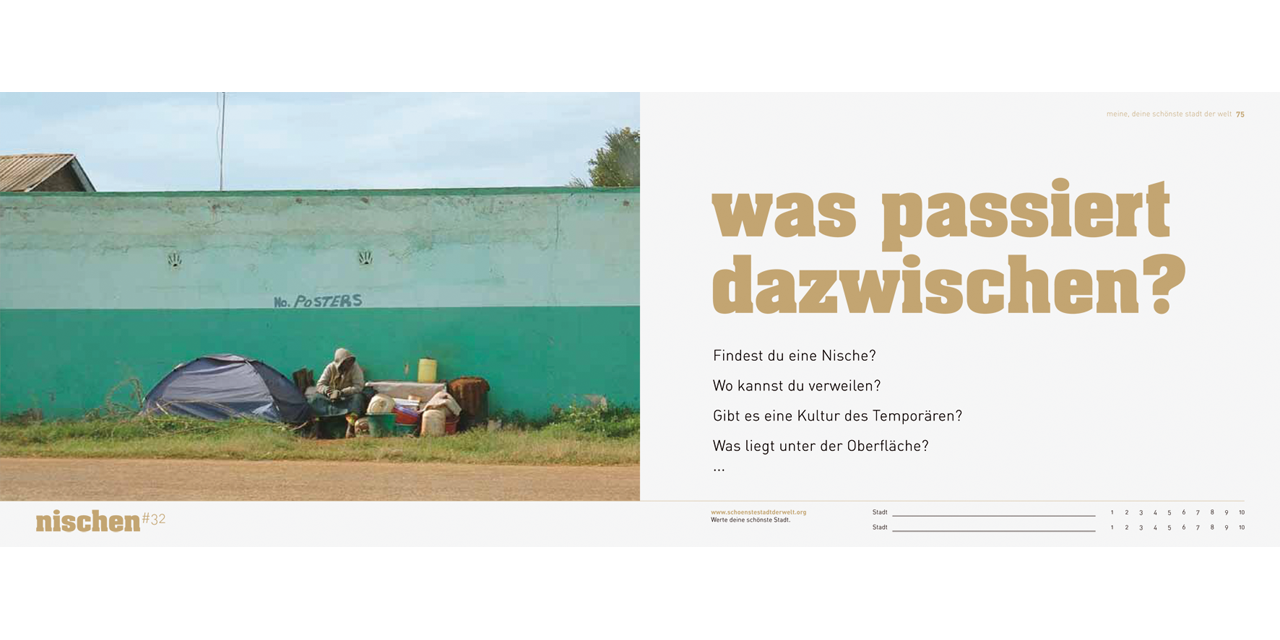 Soon, more than two thirds of all human beings on the planet will live in cities, and the number of increasingly mobile people who shuttle effortlessly between major cities is constantly growing. Every year, various city rankings choose the “top ten” cities in the world. But what makes a city livable? The familiar rankings offer a very unsatisfactory answer to this question. Their economically oriented, quantitative criteria are often taken out of context and presented as universally desirable, and as the sole determining factors in evaluating quality of life. But personal experience is much more multilayered than this. Design2context began by studying established city rankings, then analyzed scenes from everyday urban life and developed criteria that make it possible to rationally examine urban quality of life from “softer” and more emotional perspectives. The result is fifty criteria and a questionnaire that invites the reader to actively reflect on his or her own personal criteria for urban quality of life. Essays by the researchers illuminate the scientific background of the study.